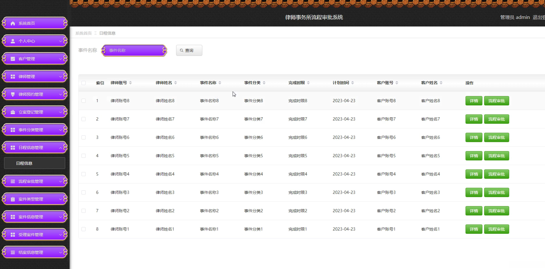 - 日程信息管理:管理律师和客户的日程安排,避免冲突。