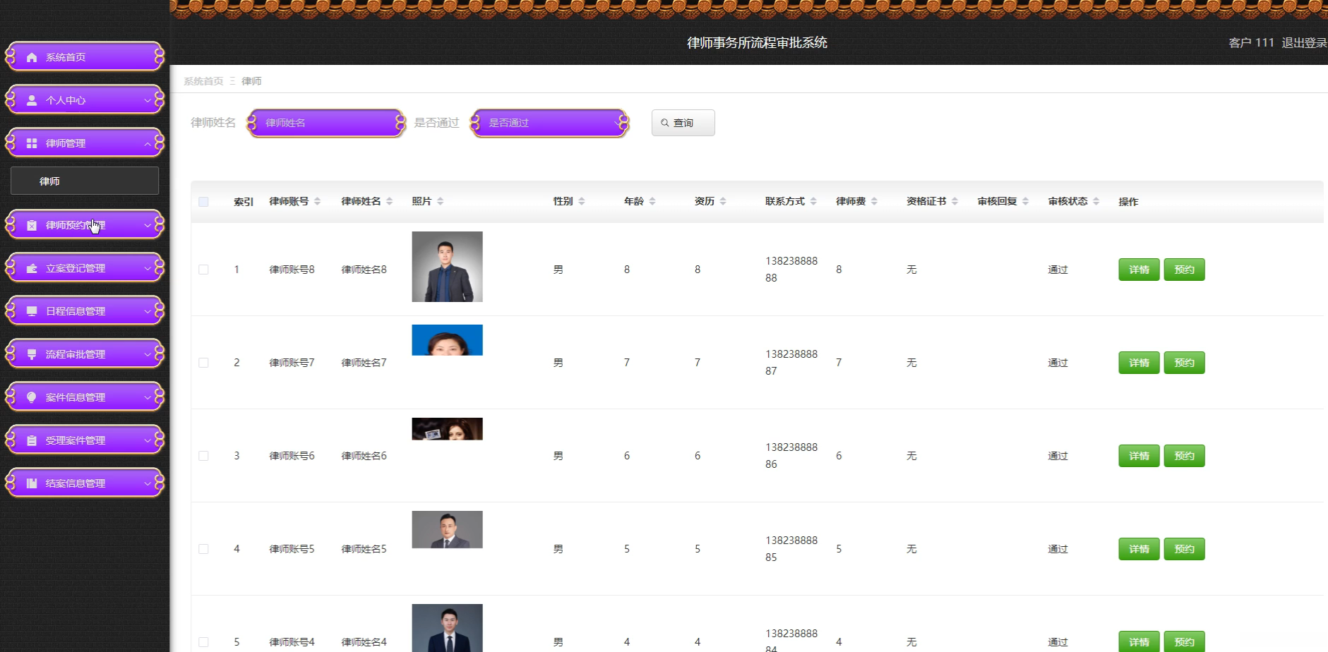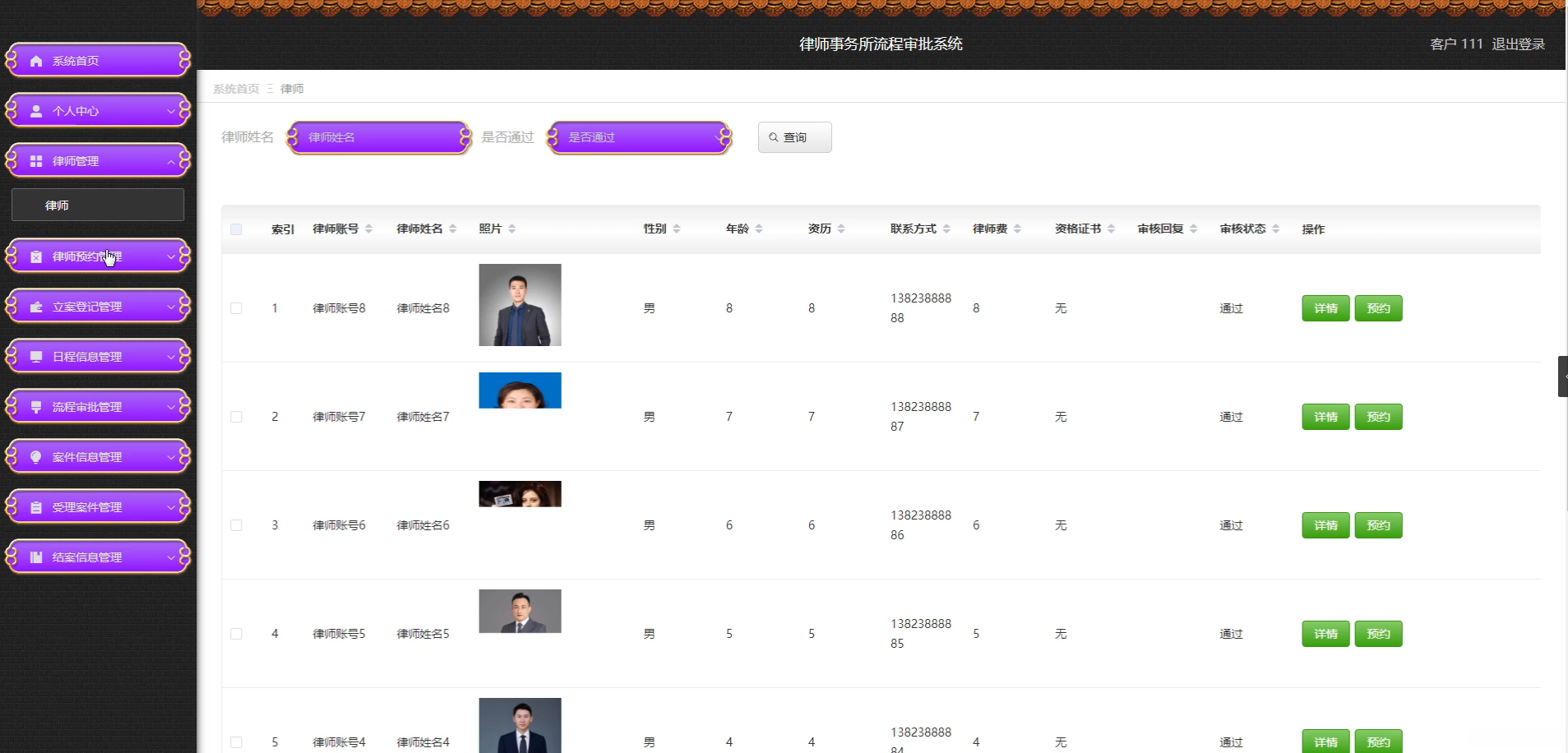 - 律师预约:提供在线预约平台,方便客户选择合适的律师和时间。