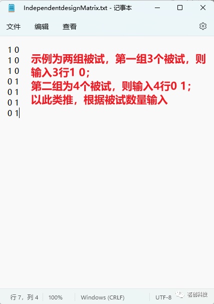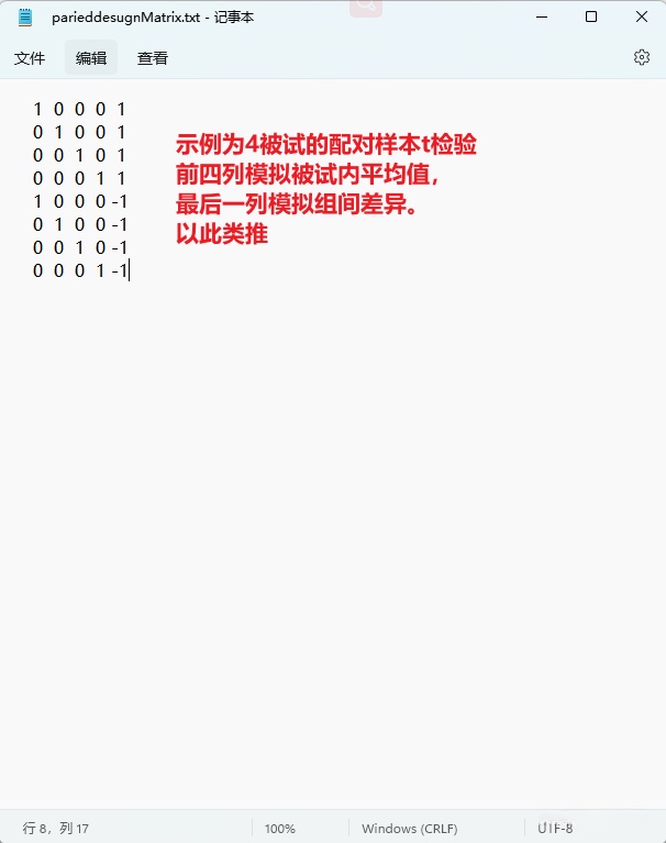 新建 txt 文件夹,第一组有多少个被试则输入多少行 1 0(1和0中间为空格);第二组有多少个被试则再输入多少行 0 1(1和0中间为空格);
