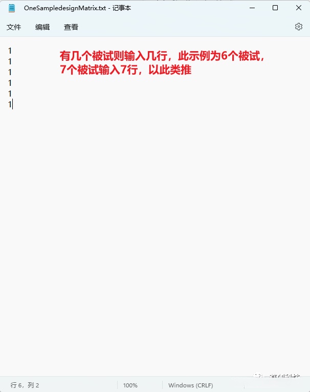 新建 txt 文件夹,有多少个被试则输入多少行 1;