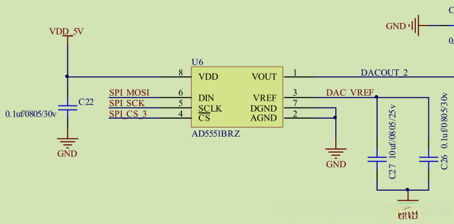 AD5551芯片,该芯片是14位输出精度的,输入范围:0-16384,对应0-5V