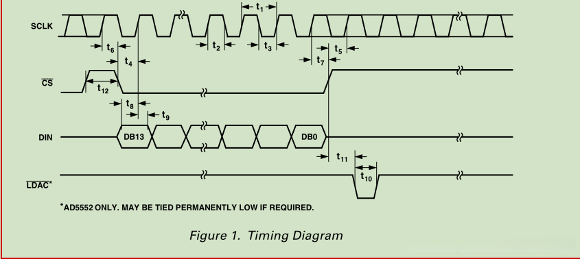 看了时序图,感觉很简单,按照时序把DB13-DB0这14位数据传进去就好了,结果调了一上午也没反应。