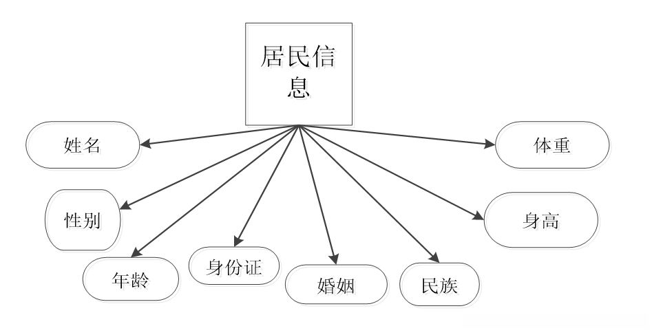 该系统包含居民信息的详细属性设置,其中包括姓名字段、性别字段、年龄字段、身份证字段、民族字段、贯籍字段、手机字段、婚姻状况字段、身高字段以及体重字段等。此外,系统还提供了社团信息的实体属性图,具体内容可参考图4.4。