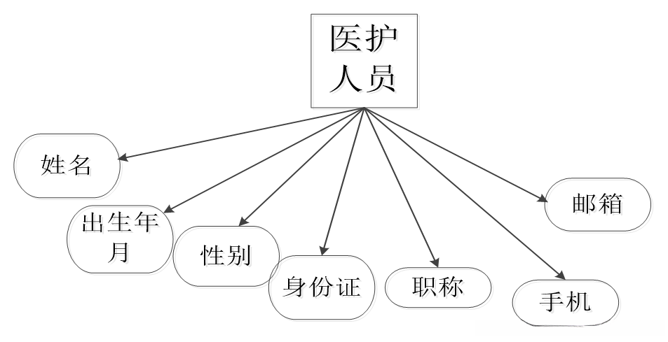医护人员实体有,姓名、性别、出生年月、身份证、职称、手机、邮箱,