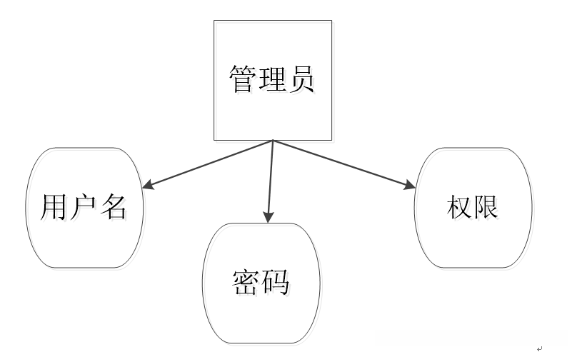 管理员实体有用户名、密码、权限,如下是管理员实体的属性图,如下图4.3所示。