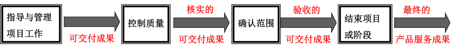 作为指导与管理项目工作过程的输出的可交付成果将得到检查,并与项目范围说明书定义的验收标准作比较