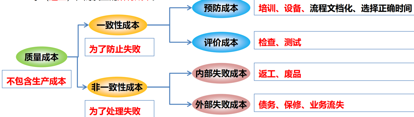 质量成本----在产品生命周期中为预防不符合要求、为评价产品或服务是否符合要求,以及因未达到要