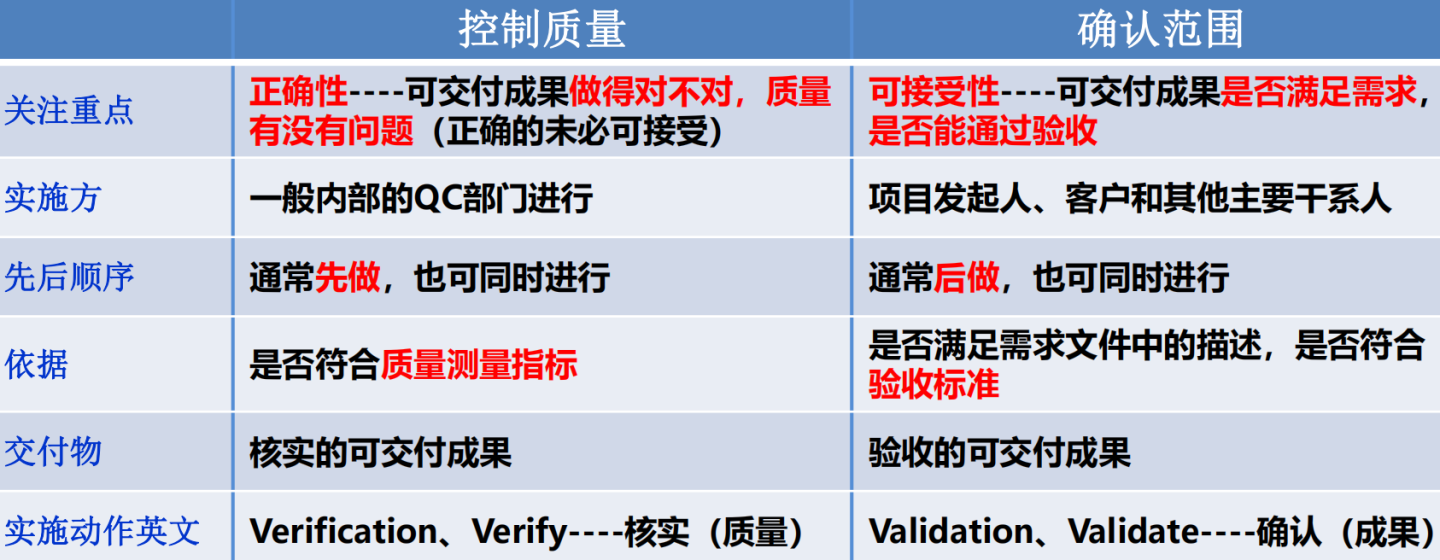 ⚫ 项目质量管理的核心概念----一些术语的区别(P274)