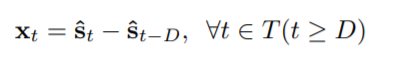 定义x_{l,t}为TS-LSTM网络在时间步t处的输入。记D_l为其差分序列(difference sequence)。通过D_l与D_{5}的操作结合,在时间步t处选择合适的权重系数α_l,t ∈ [0,1]来计算当前时刻的状态值x_{l,t} = α_l,t * (D_l - D_{5}) + (1 - α_l,t) * D_l^{(6)}(如图4所示)。对于每个时间步t,在该位置上的Ts LSTM单元及其所连接的第一个 LSTM 层在时间步t处的状态输出量提取出来。