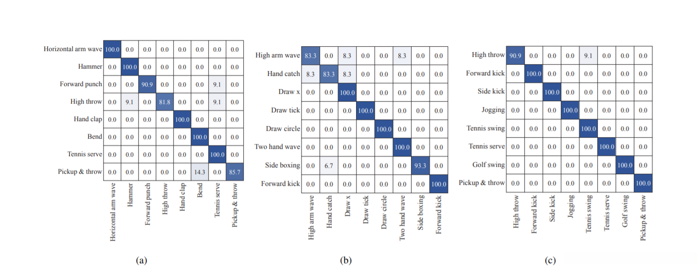 为了深入分析实验结果, 我们采用了MSR Action3D数据集, 其中包含了丰富的动作类别, 这一特性使得其成为评估算法性能的理想选择。