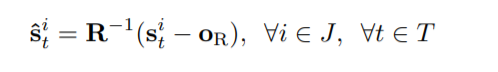 让s i t∈R3×1为第t个骨架框架第i个关节的坐标。变换后的骨架关节坐标为: