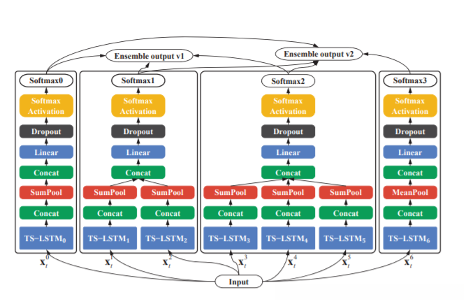 其中,在n (\cdot)_n=0处计算得到[ (\cdot)_0, (\cdot)_1, \dots, (\cdot)_{N_l-1}]这一序列在第l个TS-LSTM及其内部第n个LSTM模型下的第m个序列均值,并定义为q_{l,m}^{M}= q_{l,M}^{\text{年代}/\text{王}}。具体而言,在每个阶段中将第m个序列的SumPool与MeanPool输出结果进行连接运算: