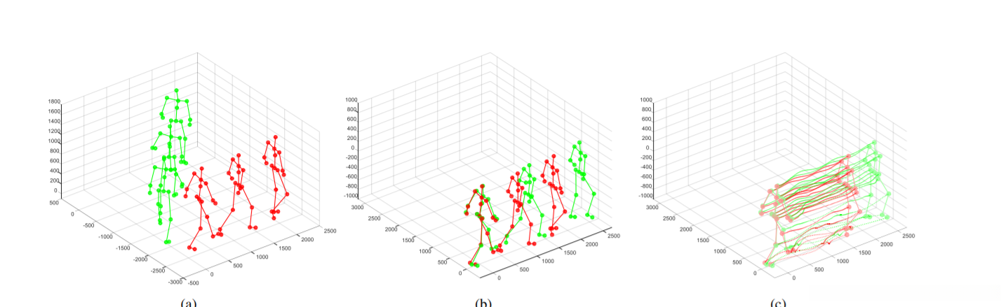 在本节中,我们简要回顾现有文献与提出的处理基于人体骨架的行动识别的两个主要问题的模型密切相关。一是骨架输入序列的特征表示,二是动作识别的时间动态建模。Wang et al.[17]通过关节的两两相对位置来表示人体运动,具有更多的区别特征。Cho等人[4]标准化了骨架的方向,这样每个骨架都可以在原点有根。利用身体各部分对之间的相对几何关系,Vemulapalli等人[16]表示李群中人体部位的三维几何关系。Du等,[6]利用Cho等人[4]标准化了骨架的方向,这样每个骨架都可以在以髋关节中心、髋关节左、髋关节右关节坐标为坐标系原点。这种相对坐标系在对骨骼关节的绝对运动进行分类时,会造成对动作的误解。