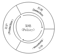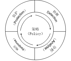 P2DR模型是由美国国际互联网安全系统公司(美国国际互联网安全系统公司全称:American International Internet Security System, ISS)建立并提出的。它是一种基于时间轴的空间自适应网络安全框架。该框架在遵循特定的安全策略指导下,默认整合了Protection模块、Detection模块以及Response模块这三个核心组件形成一个完整的动态循环机制(如图2所示)。