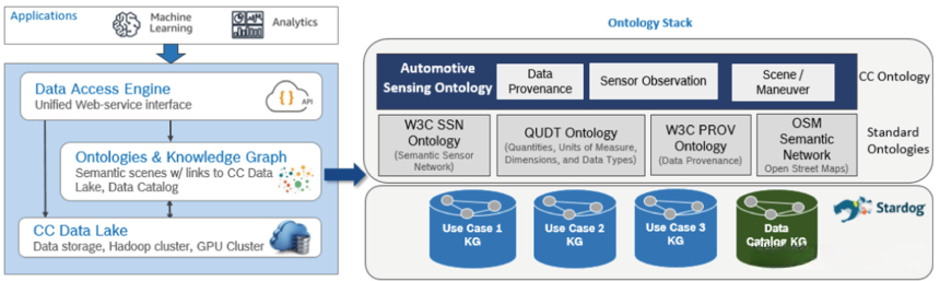 - 基于这些需求,对特定于用例的本体进行建模,并开发流程来构建各自的知识图,每个知识图存储在Stardog[2]集群上的独立数据库中