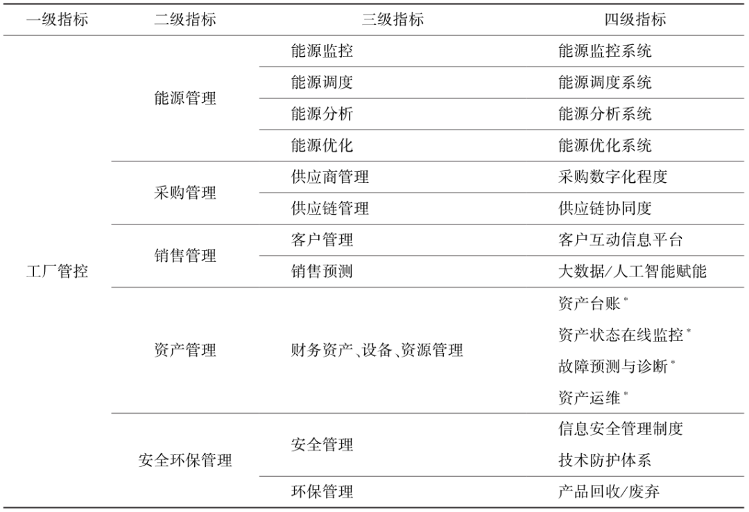 表6 工厂管控层指标构成(灰色背景为标识相关部分)