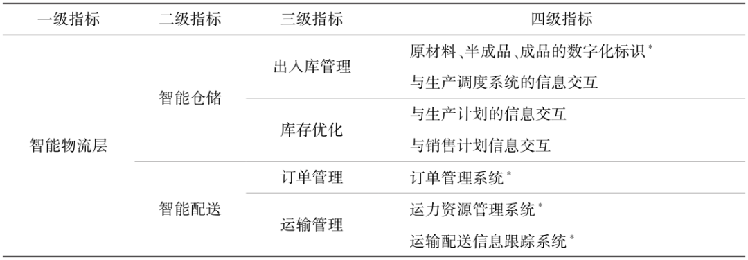 智能物流系统通过电子条形码、射频信号识别处理系统、控制器、传感器等智能化数控物流信息处理设备的协同工作,在自动化货物分拣配送方面构建起智能化分拣配送体系,并通过提升运营效率降低作业时长的同时实现物流成本最小化目标;同时能够有效降低作业时长并显著降低运输成本水平。该系统通过构建多层次绩效评价体系实现物流服务质量和运营效益的最大化提升;智能物流层绩效评价指标体系由二级、三级、四级指标构成其中二级指标主要从工厂信息化水平智能化程度以及协同运作能力三个维度进行考核评估