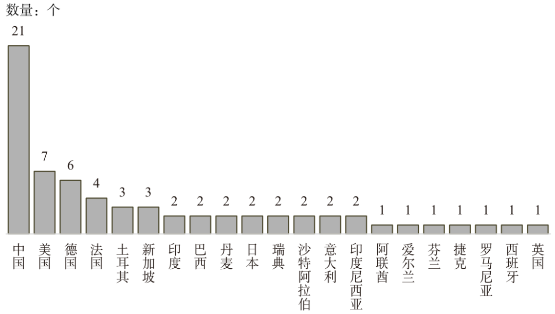 2018年,世界经济论坛和麦肯锡咨询公司共同启动全球性的灯塔网络项目,在全球制造业企业中遴选具有迅速应对市场需求、降低生产成本、提高生产效率能力的“数字化制造”和“全球4.0”应用示范者,深入了解其生产方法,进而推动全球经济持续增长。截至2021年3月,世界灯塔网络共有69 家灯塔工厂,其中中国灯塔工厂占21 席,是世界上灯塔工厂最多的国家,且数量是位居第二的美国的3 倍(见图1)。同时,我国灯塔工厂主要分布于沿海地区,西部地区四川省占2 席,且均在成都,存在严重的分布失衡问题(见图2)。