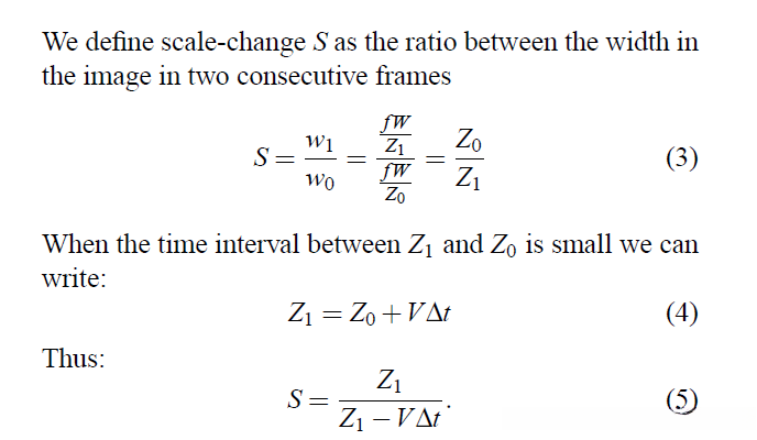 做这个实验是,需要的数据为,前后两帧检测到的物体在图片中宽度比值。