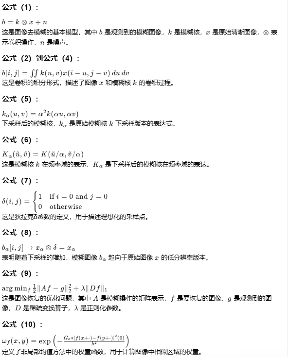- 非盲图像去模糊 :已知模糊核,目标是恢复潜在的锐利图像。