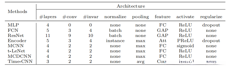 - 我们深入阐述了专为TSC设计的九种端到端深度学习模型架构。