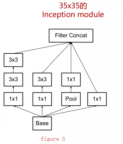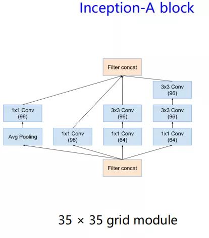采用两个3×3的小核卷积来取代传统的5×5大核卷积,并配合平均池化操作。该模块主要作用于大小为35×35的特征图;结构如下图: