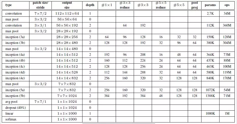 GoogLeNet,在ILSVRC-2014分类与检测比赛中取得了冠军地位。相较于当年同类比赛中的第二名VGG网络对小尺寸卷积层(3x3)采用了较为基础且单一的方式,GoogleNet提出了更具创新性的Inception模块设计。尽管网络架构较为复杂,在参数规模上较之 AlexNet 减少了约8.7%,仅为其十二分之一水平(即约为 AlexNet 参数量的 8.7%),而 VGG 网络则达到了 AlexNet 参数量的大约三倍之多)。然而,在实际性能表现上却略高于后者。