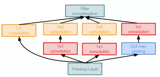 源自Network in Network的研究者们,在他们的研究工作中首次提出了基于深度学习模型的设计理念。他们通过应用1×1卷积操作对特征图中的通道数量进行了降秩处理,并在此基础上构建了Inception系列模型的核心架构设计。这即为Inception v1模型的具体实现方式,在后续章节中将详细阐述这一过程