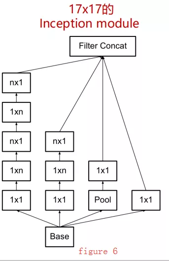 第2个模块(figure 6),进一步地进行3×3卷积核的分解工作,并将其划分为横向和纵向的一维卷积操作;随后将其应用于大小为17×17的特征图上;具体而言,则按照以下架构展开设计