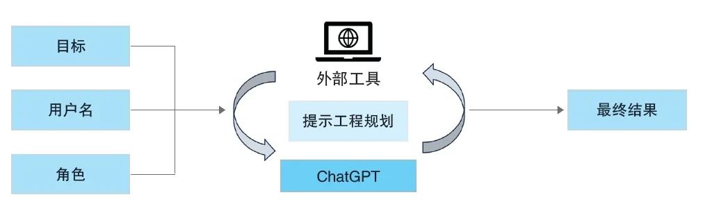 如图2所示, 一个基于大语言模型的AI Agent系统主要由三个关键部分构成: 大语言模型(如ChatGPT)、提示工程规划以及外部工具. 其中, 大语言模型充当着AI Agent的核心功能模块, 它能够将复杂任务分解并自动化处理, 同时具备推理与规划能力, 还能监控并优化执行效果. 提示工程规划则是确保系统能够解决问题的关键环节, 它根据特定策略自动生成用户指令与提示组合, 这些组合主要包括用户的用户名、角色设定以及目标指向. 外部工具则是一些可扩展类型的功能模块, 它们为大语言模型补充其不足之处. 每一种工具都对应着一种特定的功能模块, 比如网络爬虫、搜索引擎或图像生成器等. 这些辅助工具调用返回的结果会进一步成为提示工程规划的重要组成部分, 最终帮助大语言模型完成用户的各项设定目标.