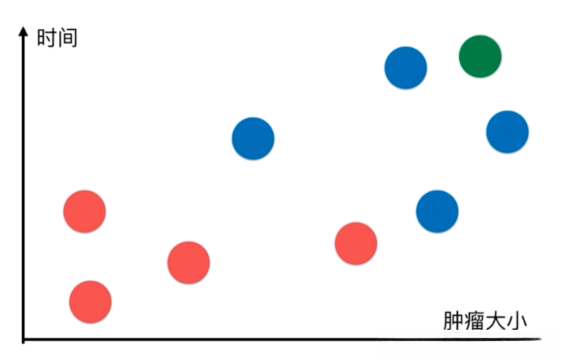 新来了一个病人(下图绿色的点),如何判断新来的病人(即绿色点)是良性肿瘤还是恶性肿瘤?