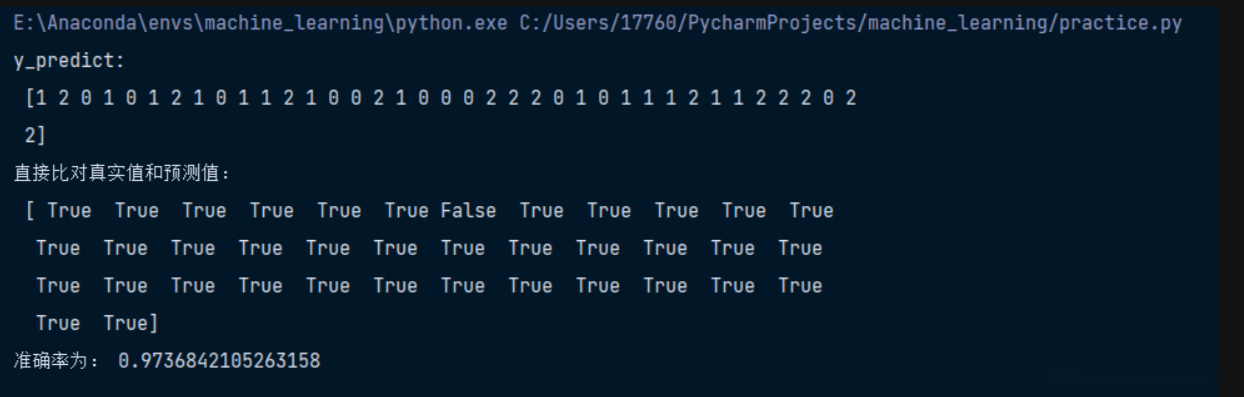 print("比对预测结果和真实值:\n", y_predict == y_test)
