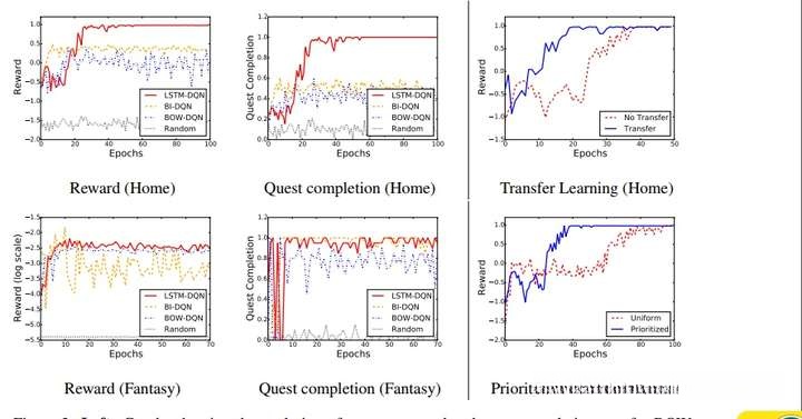 发现LSTM-DQN网络完成96%的任务,bag-of-words模型能完成82%,random模型完成5%