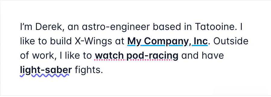 like to <a href="#" class="underline decoration-pink-500 decoration-dotted decoration-2">watch pod-racing</a>