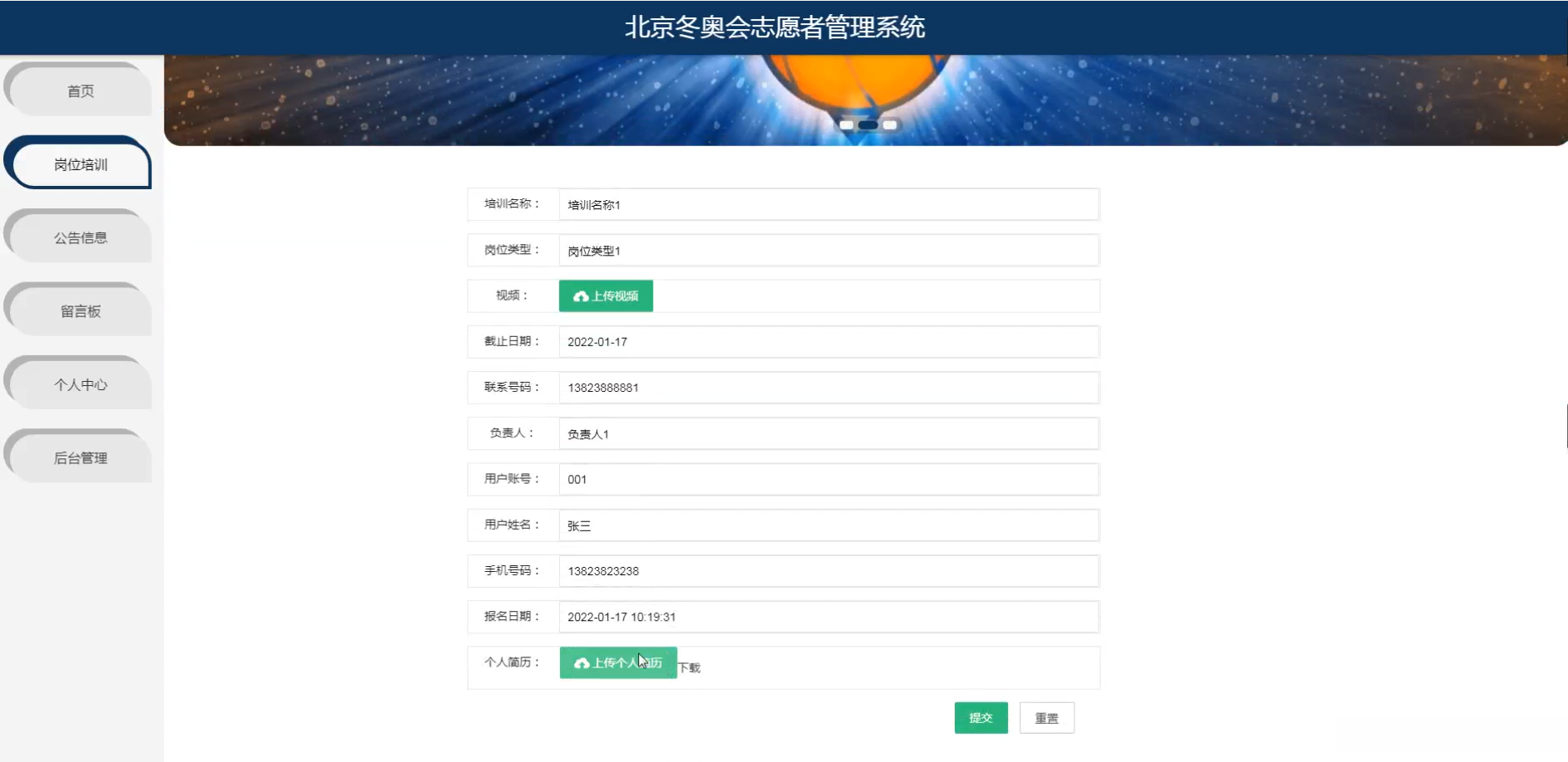 jsp北京冬奥会志愿者管理系统74jj5(程序+源码+数据库+调试部署+开发环境)