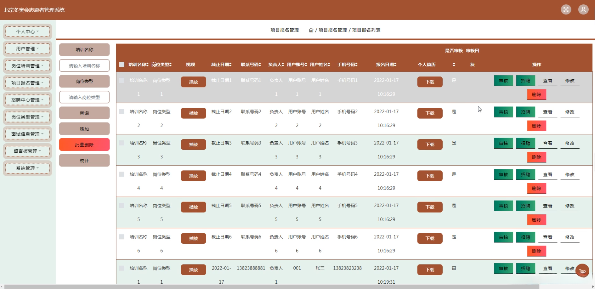 开发一套北京冬奥会志愿者管理系统,旨在实现志愿者信息的集中管理、招募流程的简化、工作安排的优化等功能,提升志愿者工作的效率和质量,为冬奥会的顺利举办提供有力支持。同时,该系统也将为其他大型活动的志愿者管理工作提供有益的参考和借鉴。