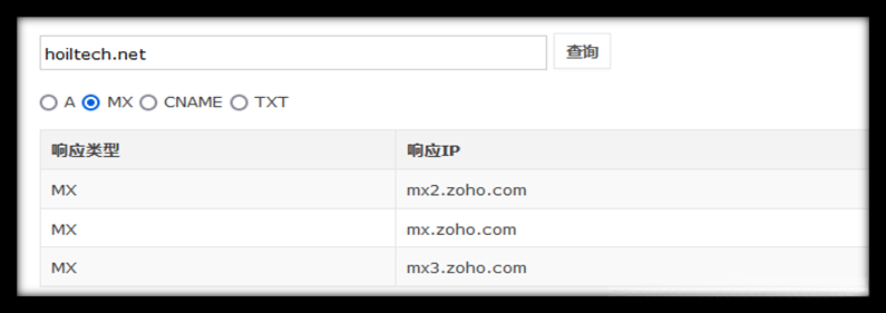 钓鱼邮件hoilte**.net经由MX2/MX3(MX\MX3).zoho.com发件人服务器执行轮询或自由选择路由策略发送电子邮件至合力泰邮箱网关接收端口,在完成经由互联网传输至目标合法邮箱系统后完成收件操作