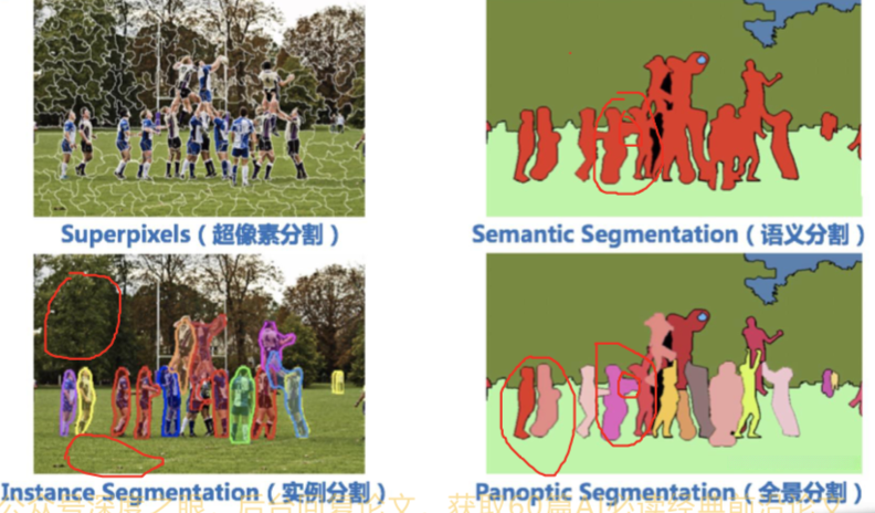 语义分割:逐像素分类,无法区分 个体- 实例分割:对个体目标进行分割, 像素级目标检测