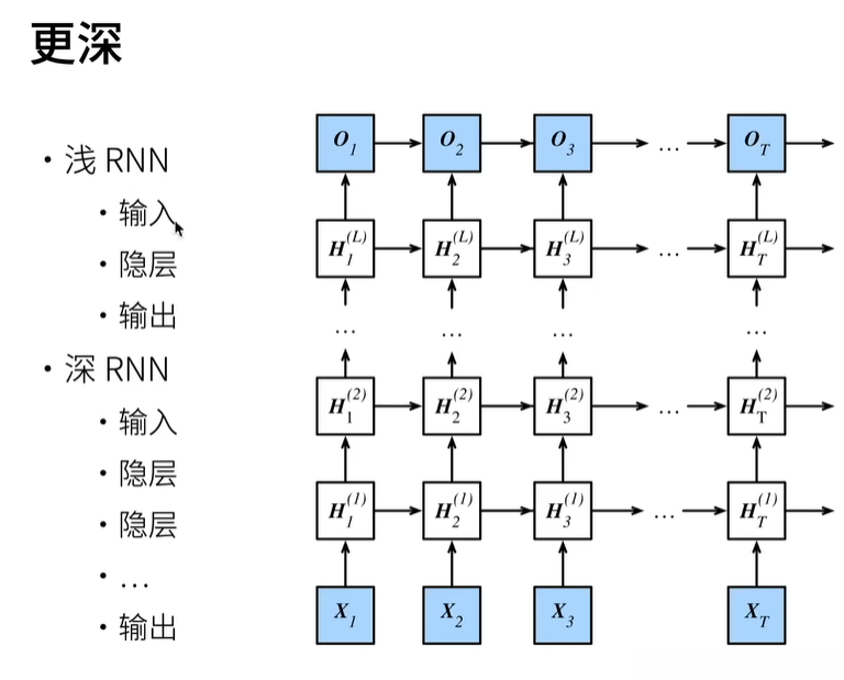 * GRU、RNN、LSTM 在结构上都是相同的,**只是隐状态 H 的计算方式有区别,所以它们加深神经网络的原理都是相同的**