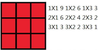 例如对于上面挖空的矩阵样例,i=3,j=3,yang[1]=3,yang[2]=1,yang[1]=3