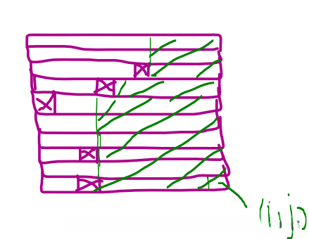 接着根据比当前行id小的第一个行, 建立一个前缀数组用于临时存储 qsum[i] = yang[i] * (i - id) + qsum[i].