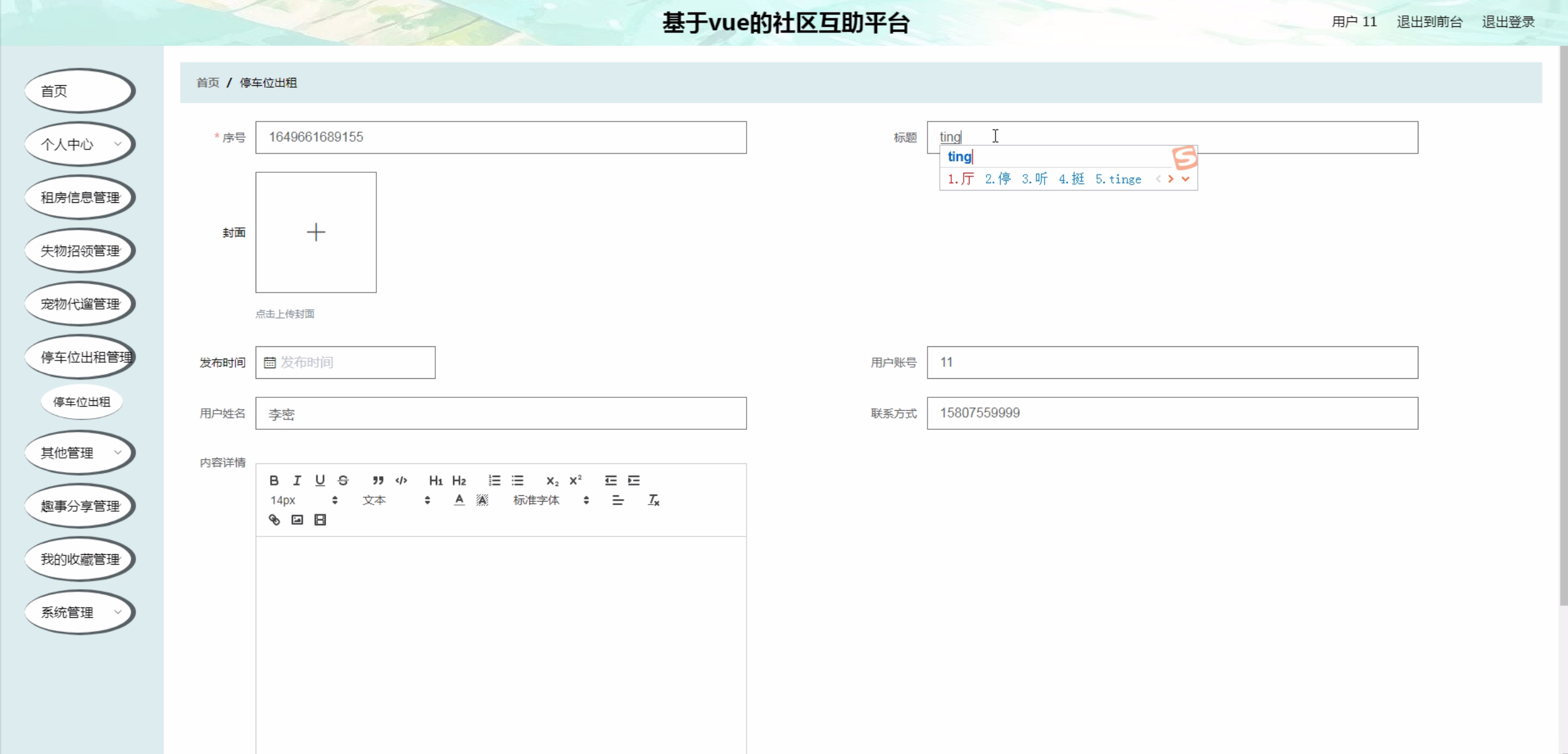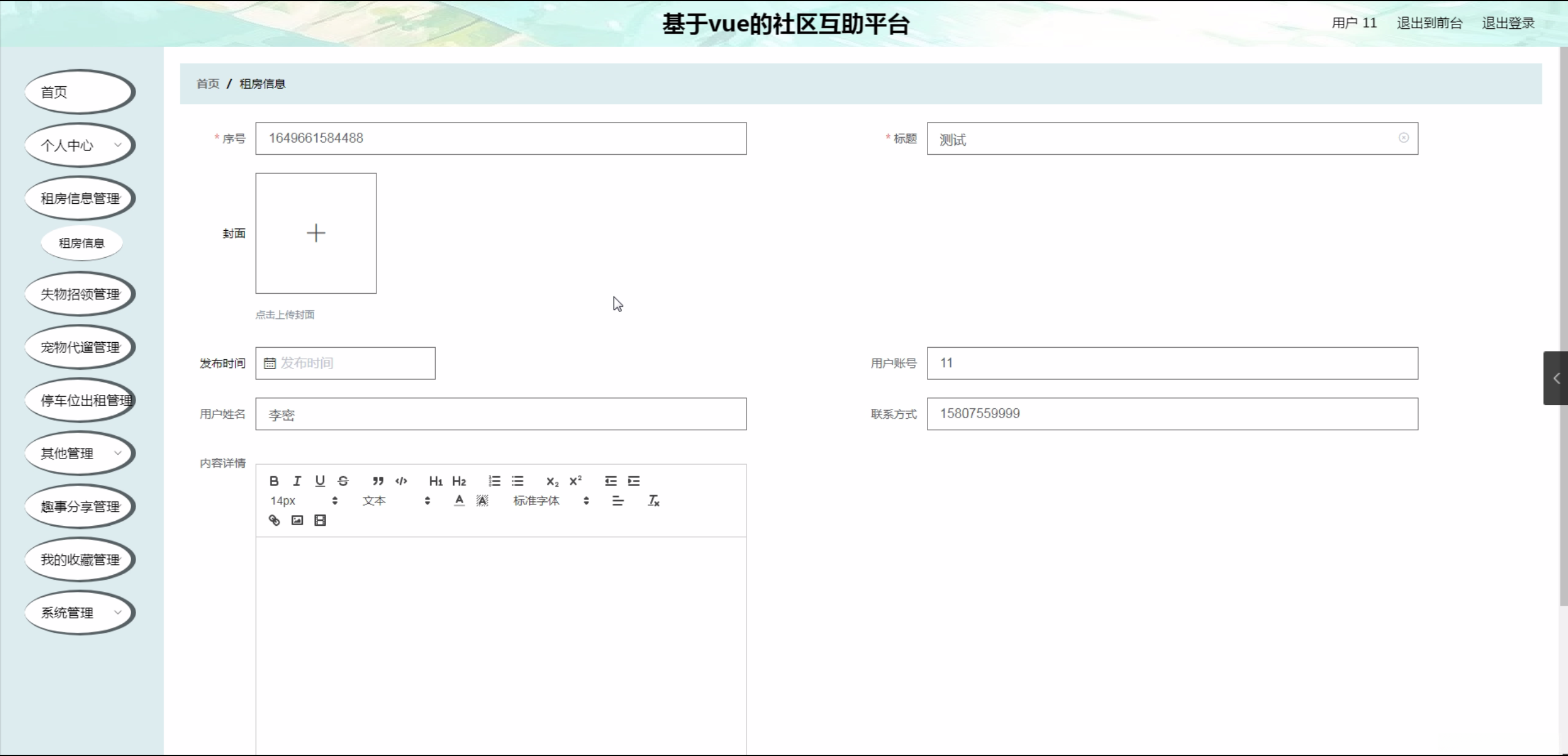 选题意义:基于Vue的社区互助平台研究具有重要意义。首先而言之者能够加强社区成员间的互动与合作,并有效提升社区凝聚力与活跃度水平。基于Vue框架设计能够实现平台的快速开发与稳定运行,并确保良好的用户体验体验。其次而言之者构建一个资源共享与问题解决的支持平台助力社区成员更好地利用现有资源并显著提升工作与生活效率水平。最后而言之者研究基于Vue的互助平台有助于推动Vue框架的技术进步与发展提供了新的实践探索方向