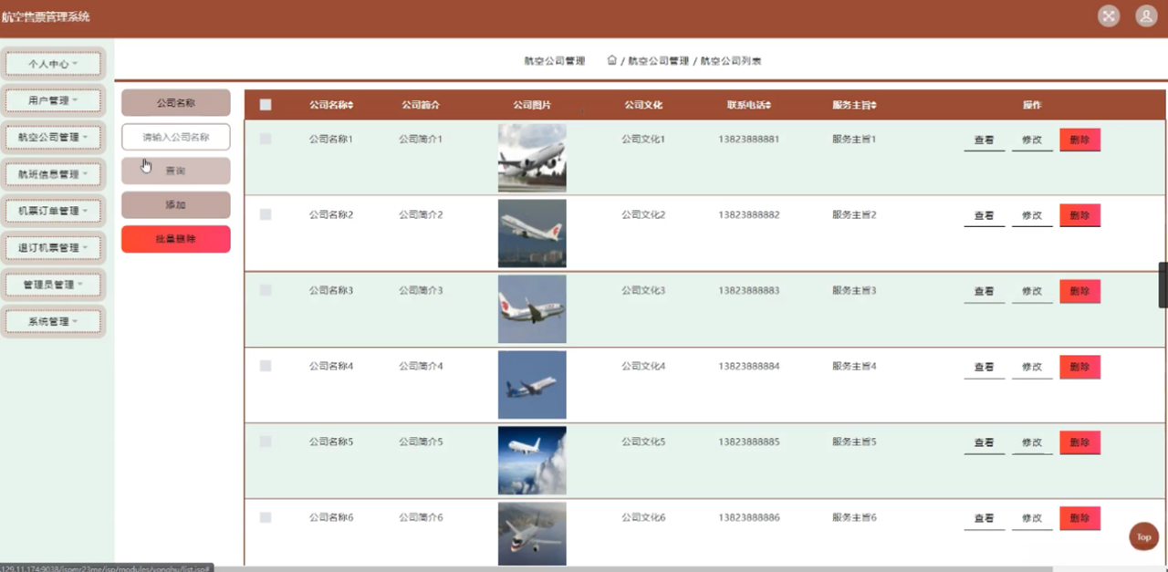 通过航空公司管理页面用户能够浏览、编辑和移除与该公司相关的各项信息内容。这些信息包括公司名称、简介、图片、文化以及联系方式和客户服务负责人等具体内容。