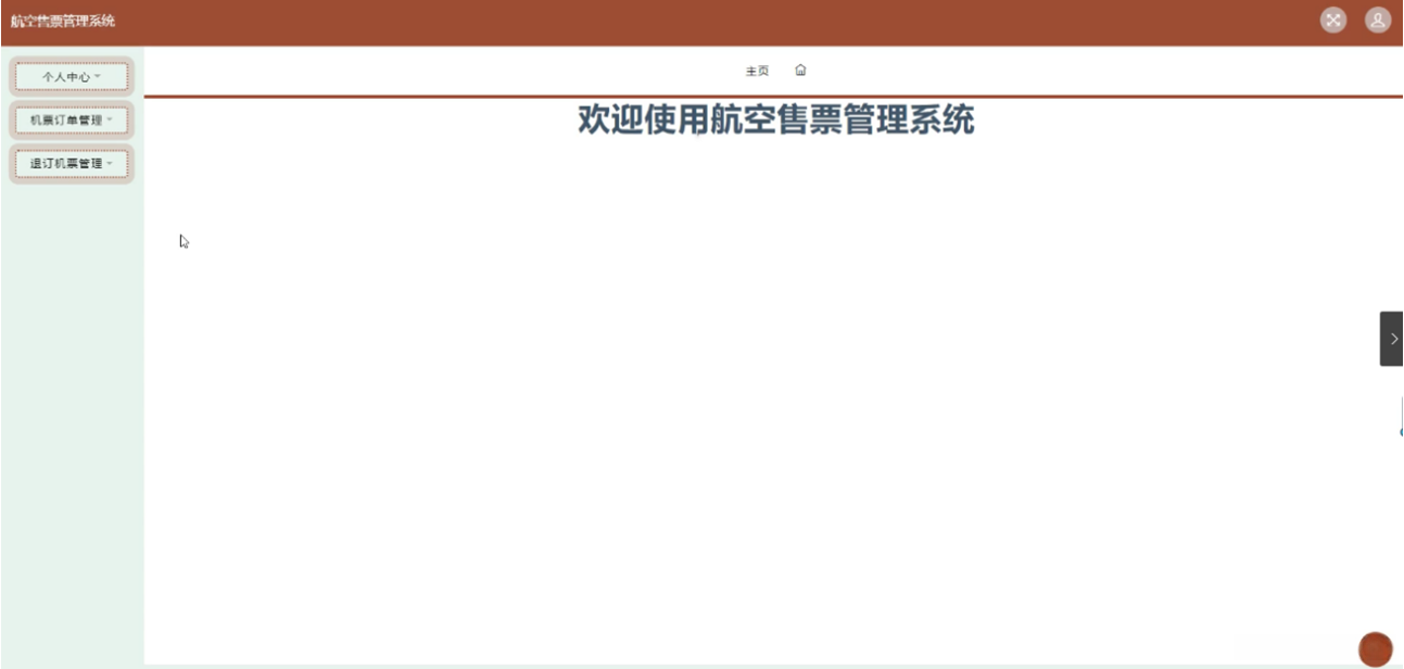 在航空售票系统的首页, 用户可以在便捷地查询并管理与各个航空公司相关的航班、票价以及最新的航空资讯, 同时也可以通过该平台访问个人账户信息, 进行后台管理功能模块的操作, 包括各种功能模块的操作步骤和使用方法; 如图5-1所示