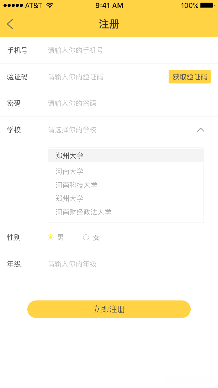 注册时直接填写所在的学校,这款APP是多校区的选择,不同学校的选择打开首页呈现的内容不一样。