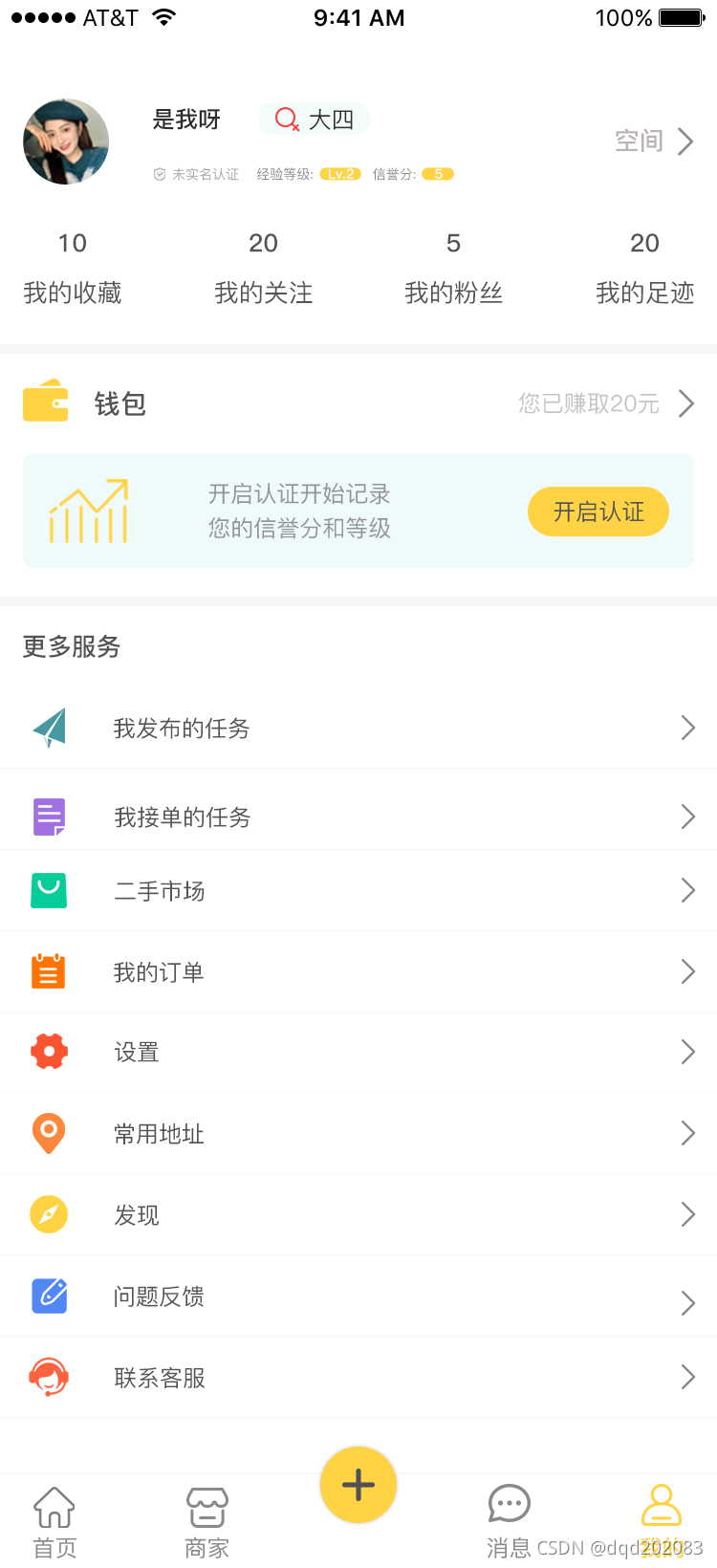 1.个人中心:可以在此修改个人资料,查看收藏,关注粉丝和足迹;钱包有微信和支付宝两个充值接口;我的任务、订单、收货地址等更多服务都在这个地方。