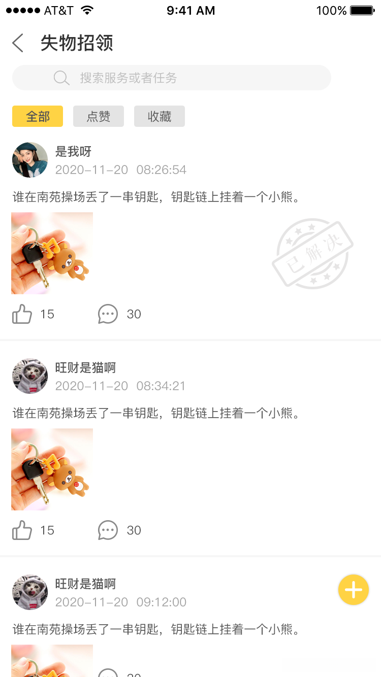 3.失物招领:生活中难免有的人丢三落四,校园中每天人来人往,教室里,餐厅里,操场上等这些人流量大的场合总会有同学遗失物品,我们的APP小程序鉴于此增加了失物招领这个功能。