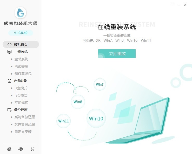 1、选择“重装系统”,等待检测环境完成后“下一步”。
