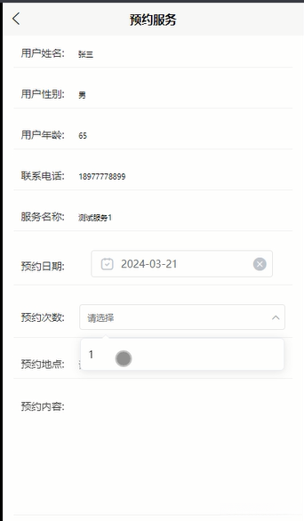 当用户点击"预约服务"时, 系统会要求他们填写预约信息包括但不限于: 预约服务、预定日期以及预定次数等内容.