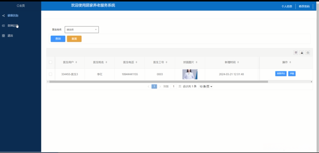 当医生进入"健康咨询"菜单时可以查阅健康咨询信息。具体界面如图所示。